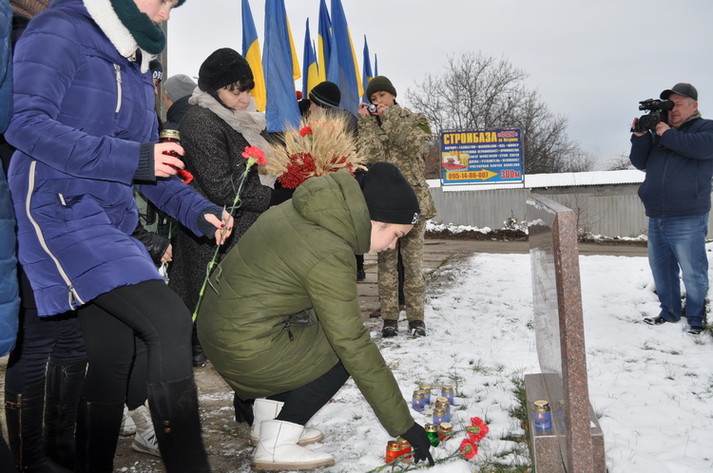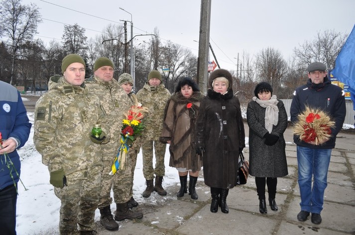 Мешканці міста прийшли до меморіалу з прапорами України, квітами, колосками пшениці і кетягами калини.