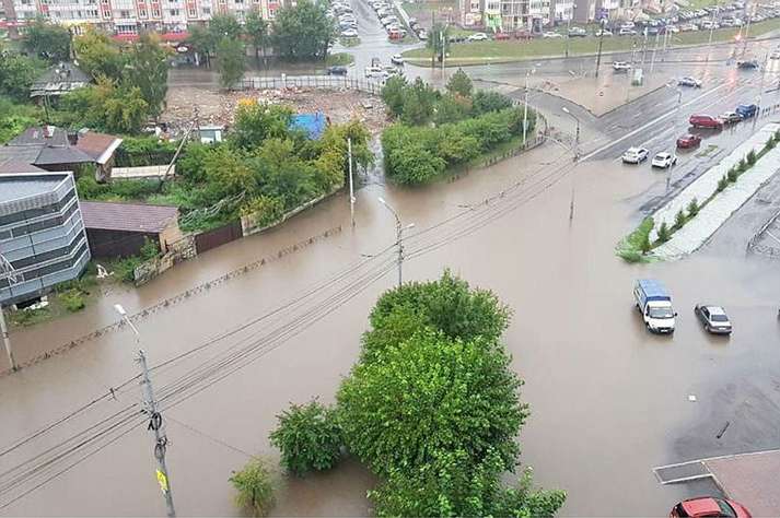 У Красноярську (Російська Федерація) справжній потоп. У місті перекрито дороги, машини - по дах у воді, вода заливається в салони навіть найвищих автобусів. Як повідомляє «Комсомольська правда», дощ в Красноярську почався рано вранці сьогодні, 20 серпня. І вже через пару годин перші серйозні серпневі опади перетворили вулиці міста в суцільне чорне море.