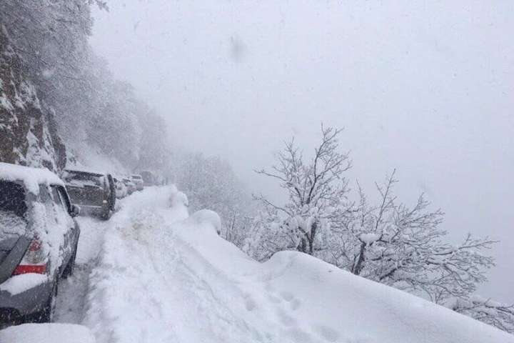 Очевидці заявили, що в заторі на трасі стоять вже понад 5 годин і не можуть спуститися вниз.
