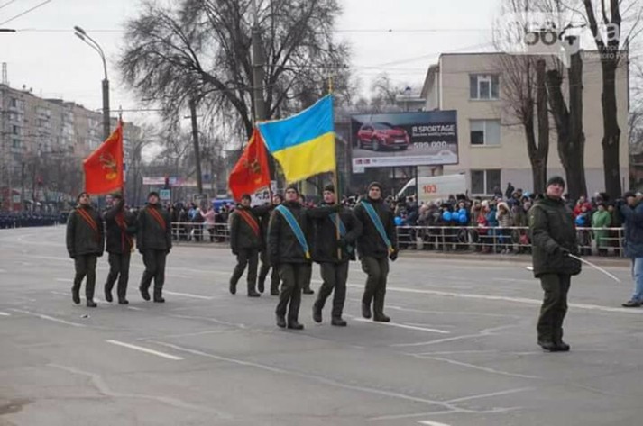 У Кривому Розі нацгвардійці пройшлися парадом з рядянськими прапорами