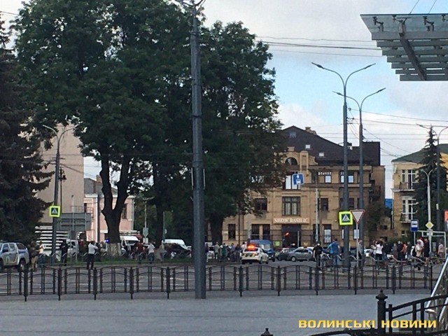 У Луцьку перекрили центральну частину міста, зокрема Театральний майдан. ЗМІ та очевидці повідомляють, що чули постріли. Перед драмтеатром знаходиться автобус із пошкодженими вікнами. На місці працюють декілька екіпажів поліції та вибухотехніки.