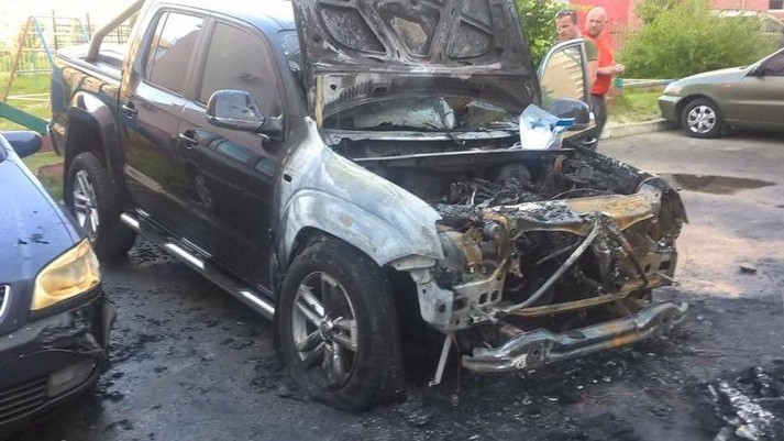 «На місці працювали пожежники, але моторний відсік пікапа Wolksvagen Amaroк вигорів вщент», — повідомили у поліції.