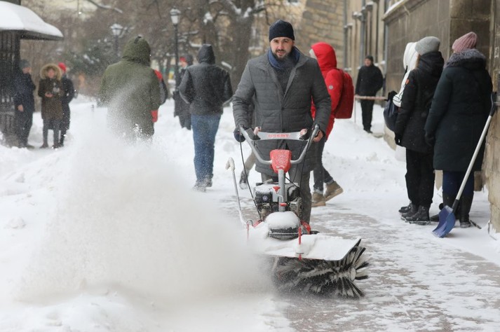 «У нас за останню добу випало 35 см снігу, і так виглядає, що наступні 10 днів його буде дуже багато, і нема в природі стільки техніки, яка могла би одночасно все це прибрати. Тому кожен, хто де живе і працює, власники магазинів, кафе, готелів повинні виходити й наводити порядок. Це об’єднає нас усіх», – повідомив мер Львова Андрій Садовий.