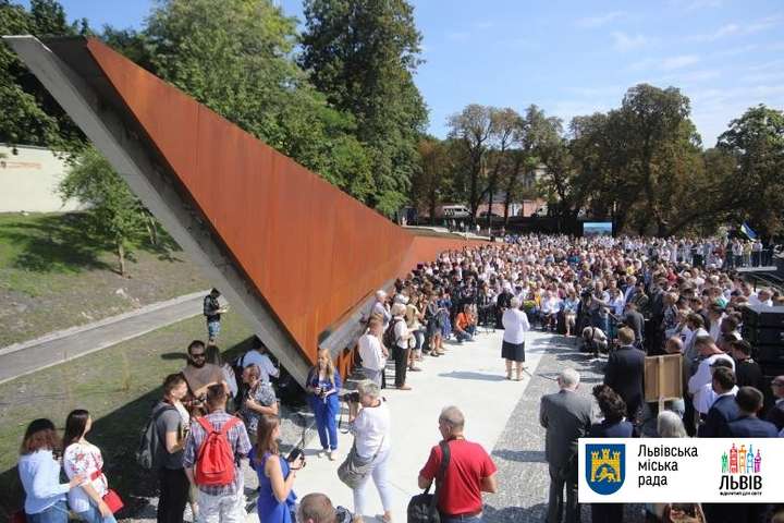 «У День державного прапора у Львові відкрили першу частину унікального для України меморіалу пам'яті героїв Небесної сотні. Сьогодні тут вперше майорить синьо-жовтий прапор», - йдеться в повідомленні.