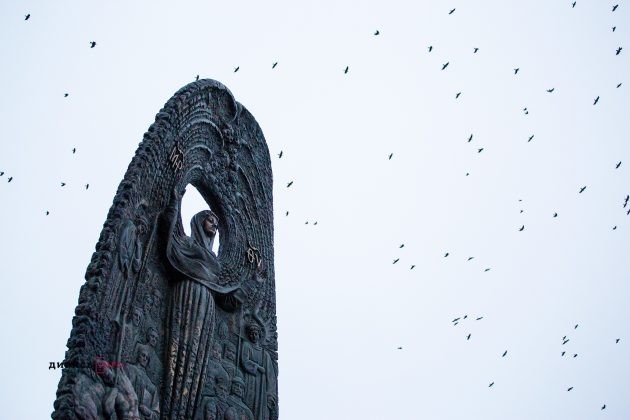 Після завершення молитви присутні за допомогою повітряних кульок підняли в небо панно-оберіг Пресвятої Богородиці, виготовлене учнями мистецьких навчальних закладів Львівщини.