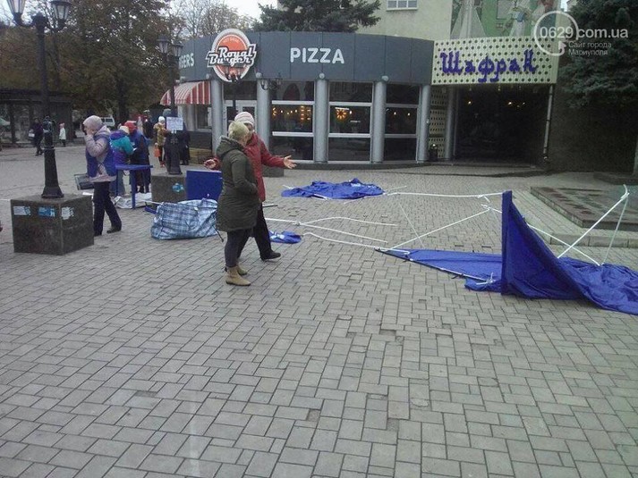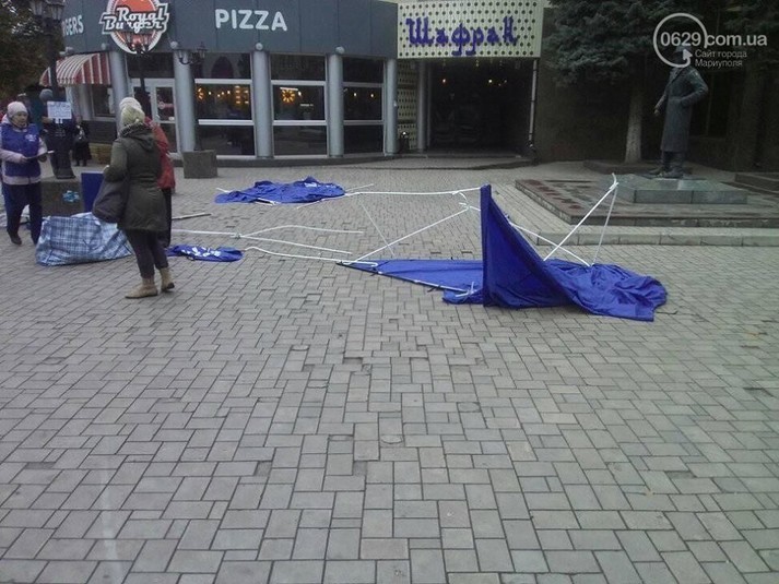 Сьогодні в Маріуполі активісти розгромили намети партії «Опозиційний блок», у яких проводилася акція проти «насильницької українізації».