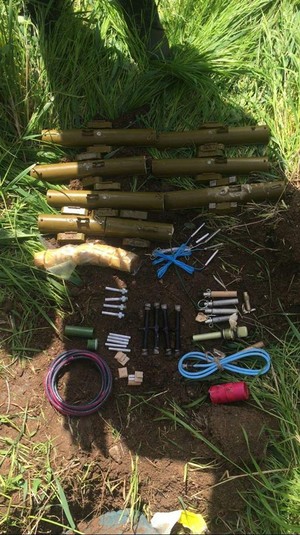 Також правоохоронці вилучили зі схованки 2 кілограми тротилу у шашках, десять електродетонаторів, п’ять капсуль-детонаторів, 16 детонаторів до підривачів миттєвої та повільної дії, вісім кумулятивних зарядів із часовими утримувачами, детонуючий шнур, сім упаковок металевих комплектуючих елементів, дві гранати РГД-5 із запалами та ін.