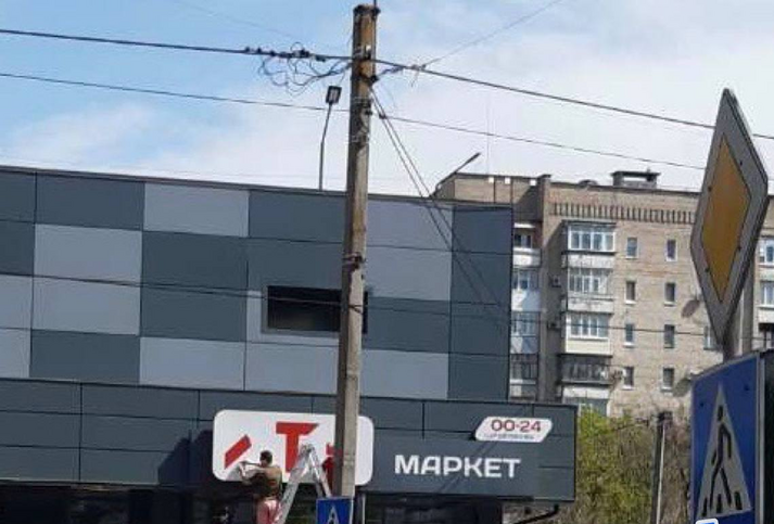 В окупованому Мелітополі (Запоріжжя) російські військові демонтували логотип популярної мережі супермаркетів та встановили на фасаді будівлі українського магазину свою назву. Про це повідомили одразу кілька місцевих Telegram-каналів.
