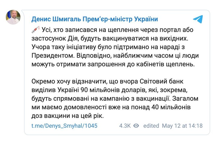 «Спочатку прем’єр-міністр Денис Шмигаль виходить і каже, що з цих вихідних почнуть вакцинувати всіх, хто записався на щеплення через додаток «Дія». Потім виходить один із його підлеглих, заступник міністра охорони здоров’я Віктор Ляшко, і спростовує його, кажучи, що будуть прищеплювати тільки пріоритетні групи людей, а на всіх, хто записався, вакцин немає…», – розповів Лохматов на своїй сторінці в мережі Facebook.