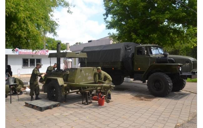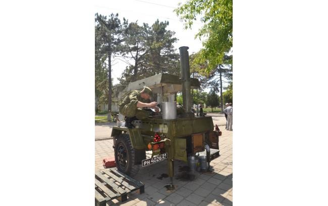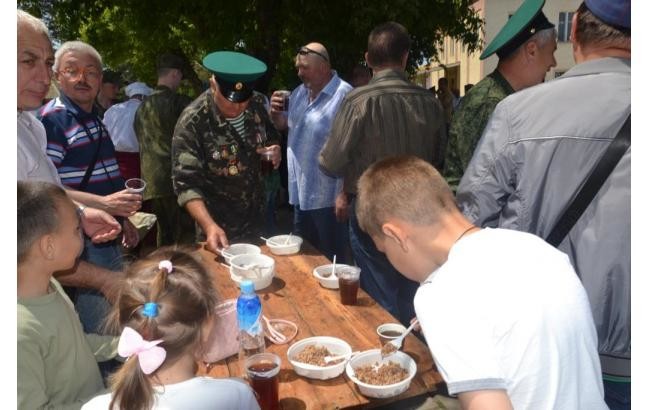 Після всіх бажаючих годували на похідній кухні. Також відбувся невеликий урочистий марш з прапорами по селищу.
