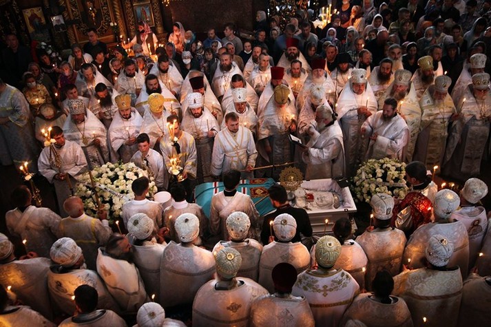 Як повідомили у Черкаській ОДА, тисячі вірян, численне духовенство, ченці і черниці прийшли проститися з лідером проукраїнського крила Московської церкви.