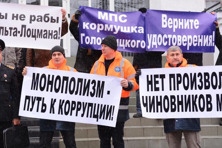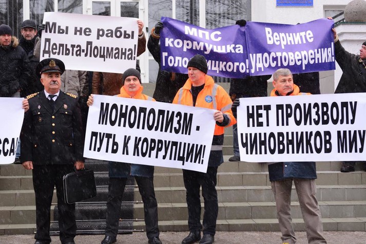 Але чиновники спеціально тягнуть час, щоб три місяці, які за законом дають лоцманові можливість отримати посвідчення без перескладання іспитів, минули. Так професіоналів з великим стажем викидають з професії. За словами мітингувальників, у лоцманів приватного підприємства Олександра Голодницького проблем із документами немає.