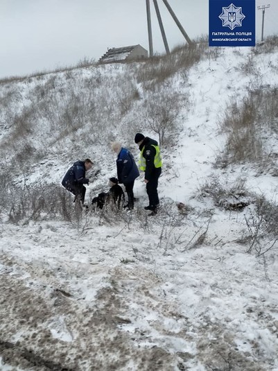 Патрульні негайно вирушили на місце події. Через деякий час інспектори виявили неподалік дороги 75-річного дідуся, який лежав у снігу та не міг підвестися. Старенький повідомив, що він перечепився та впав, а також скаржився на сильний біль у нозі та стегні.