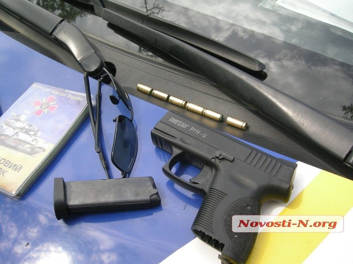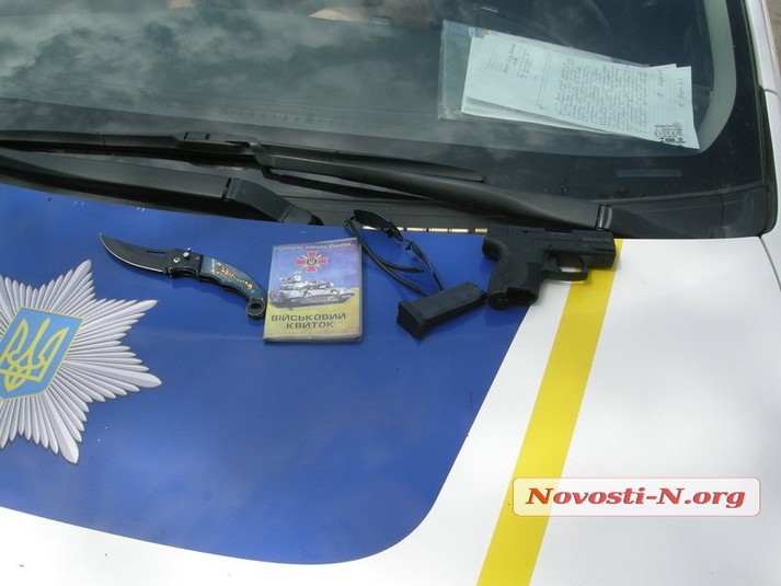 На місце події викликали представників військової служби правопорядку (військової поліції). Після оформлення протоколу вилучення зброї, затриманих доставили в Інгульський райвідділ поліції.