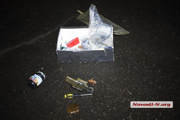 Душко додав, що в салоні автомобіля знайшли предмети, схожі на димові шашки.