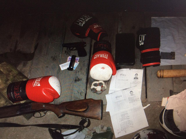 При обшуках за місцем проживання фігурантів справи співробітники спецслужби вилучили дві одиниці стрілецької зброї з набоями, гранату РГД-5, димові шашки, багато ювелірних виробів та наркотики.