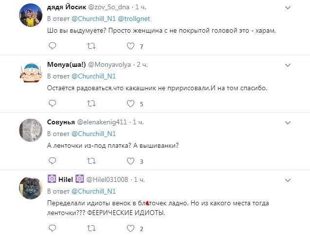 Користувачі мережі помітили, що на одній із фресок українці поверх вінка намалювали хустку та надали її обличчю «ісламських» рис. Водночас на більшості інших панно українки залишилися з вінками.