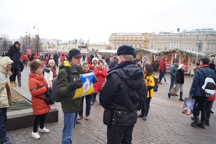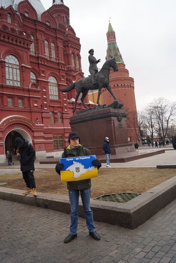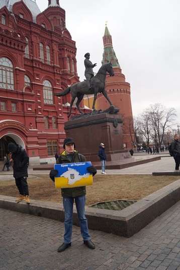 У центрі російської столиці Москви на Манежній площі громадський активіст Костянтин Котов вийшов на одиничний пікет із плакатом «Крим – це Україна».