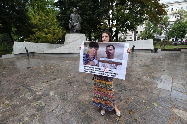 У Москві в суботу, 4 серпня, відбулась акція на підтримку ув'язненого в Росії українського режисера Олега Сенцова. Як повідомляють російські ЗМІ, захід проходив біля пам'ятника Грибоєдова на Чистопрудному бульварі. Усі охочі могли залишити квіти біля пам'ятника. Деякі залишали букети в пляшках, на яких було написано «Олег, живи».