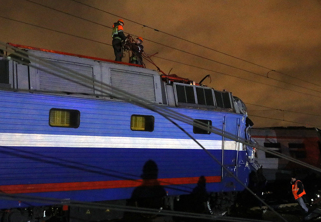 «За попередньою інформацією, на залізничній колії внаслідок застосованого машиністом екстреного гальмування через людину на шляхах сталося зіткнення електрички без пасажирів «Вязьма – Москва» з поїздом далекого прямування «Москва – Брест», в результаті якого чотири вагони зійшли з рейок», - повідомили у МНС Росії.