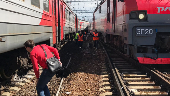 У прес-службі Московської залізниці, у свою чергу, розповіли, що у електрички «сталося сходження колісними парами двох вагонів, у результаті чого вони нахилилися у бік потяга «Стриж», що прибував з Нижнього Новгорода на вокзал».