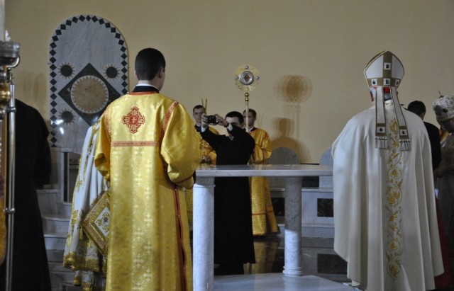 Божественну Літургію та чин освячення очолив його Високопреосвященство Кардинал Леонардо Сандрі – дипломат Святого Престолу, титулярний архієпископ Емонський з Ватикану. Разом зним і Єпископ Мілан Шашік з Мукачівської греко-католицької єпархії, Архієпископ Ігор Возняк – архієпископ Львівський Української Греко-Католицької Церкви, Митрополит Львівський.