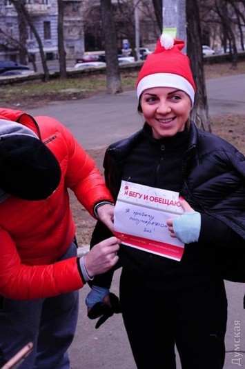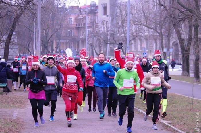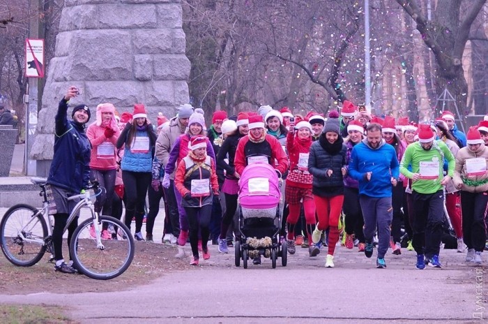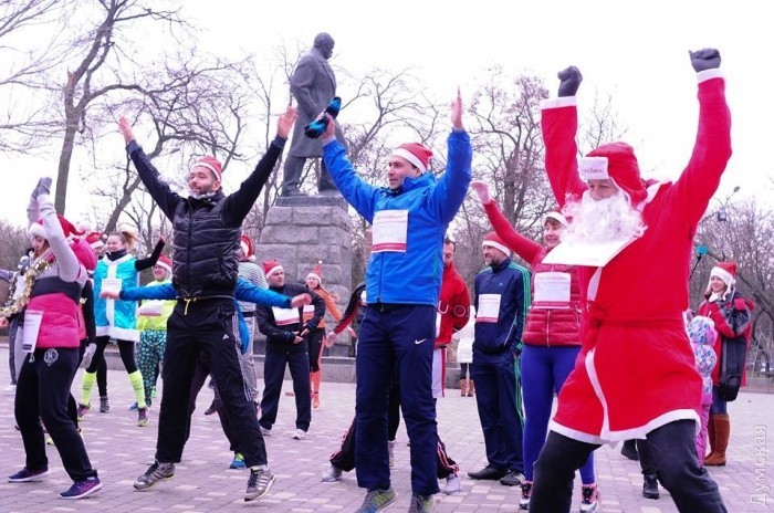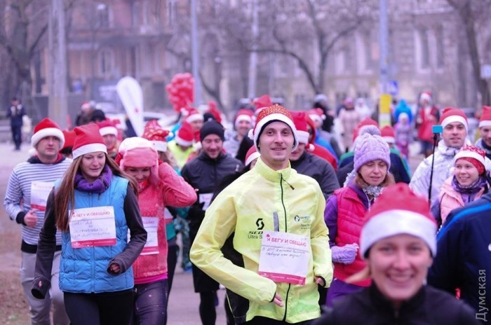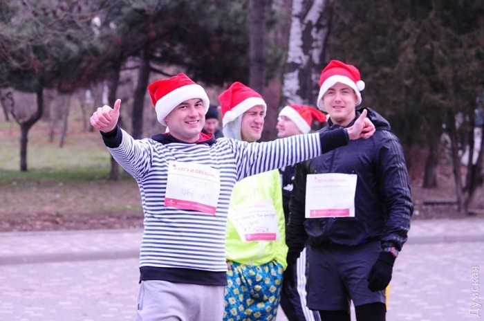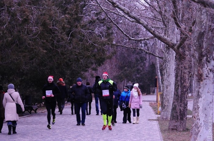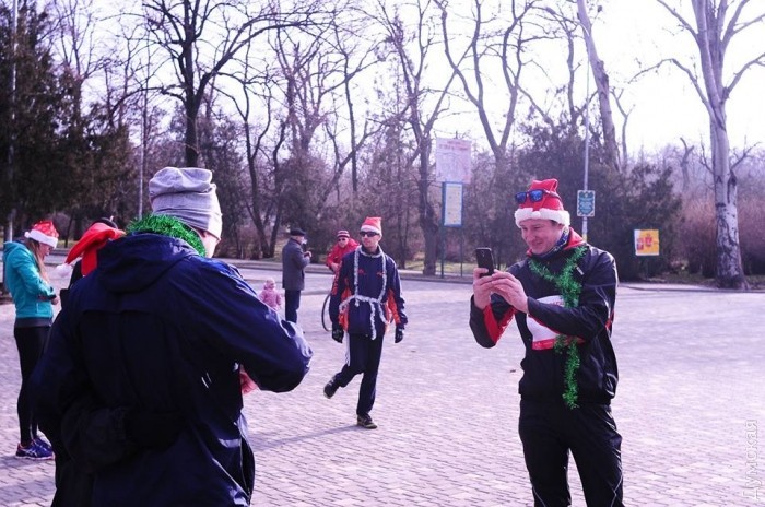 Більше ста людей в головних уборах Діда Мороза і Санта-Клауса взяли участь в новорічному «забігу обіцянок», який пройшов сьогодні в одеському парку Шевченка. Про це повідомляє «Думская».