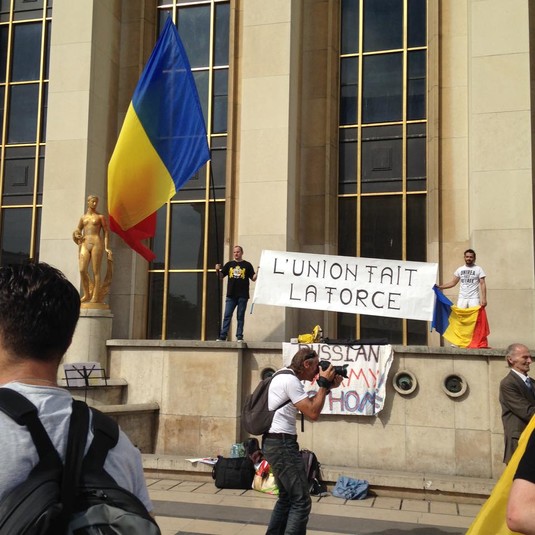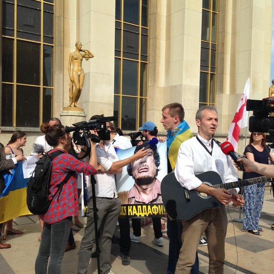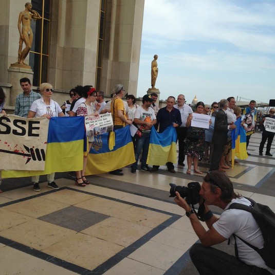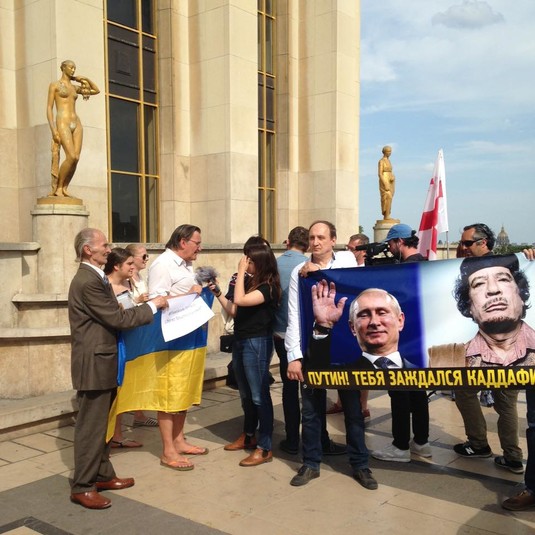 У ці хвилини у Парижі на площі Трокадеро проходить демонстрація, які направлена проти політики президента Російської Федерації Володимира Путіна. Про це повідомила користувачка Facebook Алла Лазарєва.