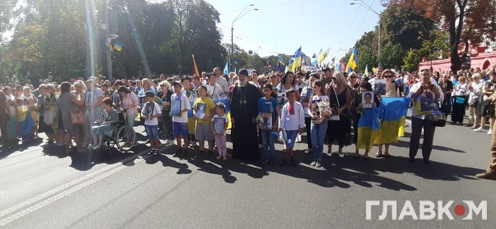 Колона рушить до Хрещатику, потому частина учасників може перейти до Михайлівської площі, де вібудеться молебень.