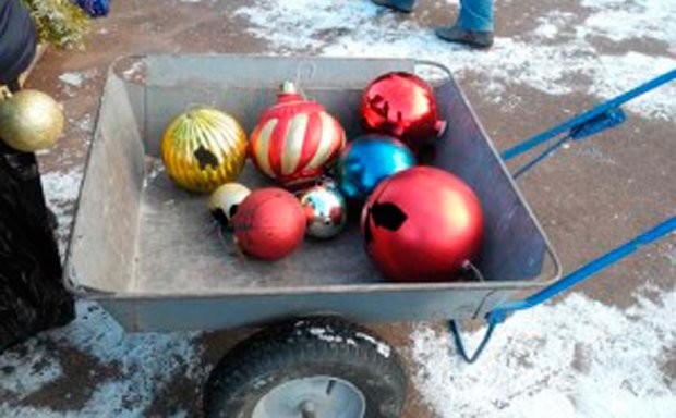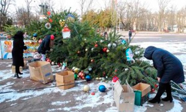 На місце одразу ж прибули працівники міського відділу культури. Надзвичайно засмучені тим, що сталося, вони почали збирати побиті іграшки та інші ялинкові прикраси.
