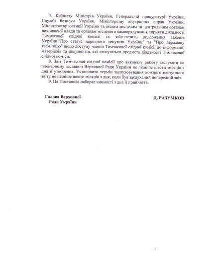 «Чітко розумію, що діяльність слідчої комісії та результати її роботи за даних обставин мають вагоме суспільне значення, а отже, нас очікує дійсно непростий шлях зі встановлення істини», – додала вона.