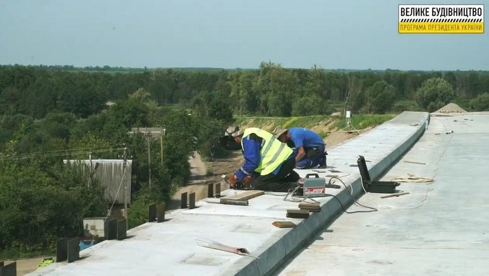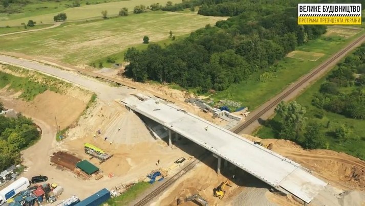 Зараз на новому шляхопроводі вже влаштували прогонову будову, встановлюють підпори, укріплюють укоси та облаштовують гідроізоляцію із гідровідведенням.