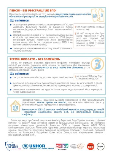 - надання людям, які жили на тимчасово окупованих територіях і не могли платити страхові внески, права докупити стаж без застосування санкцій;