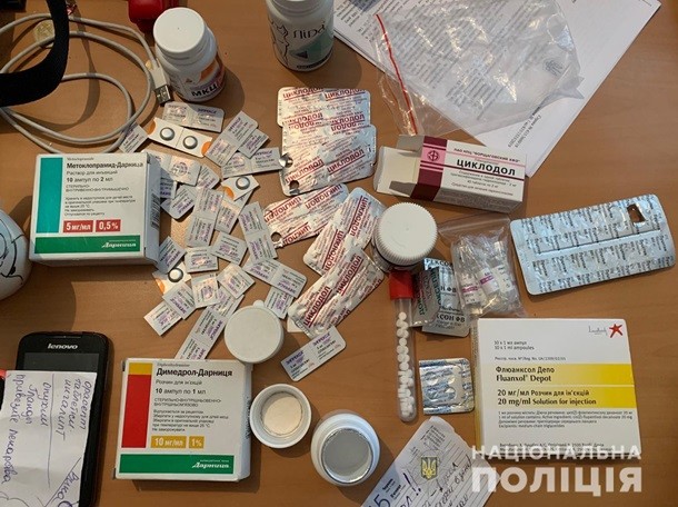 Під час проведення обшуку закладу було виявлено і вилучено 15 блістерів лікарських засобів. Також у будинку директора цього «центру» виявили і вилучили наручники, пістолет Форт, патрони до нього, банківські картки, мобільні телефони, блокноти з бухгалтерськими записами і лікарські препарати. Слідчі дії тривають.