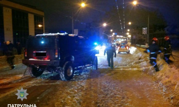 Як повідомляється, 13 лютого близько 22:00 патрульним надійшло повідомлення про незаконне заволодіння транспортним засобом Hummer на вулиці Академіка Грушевського, а від перехожих поліцейські дізналися про ДТП без потерпілих на вулиці Соборній з участю автомобілів Hummer і Daewoo Lanos.