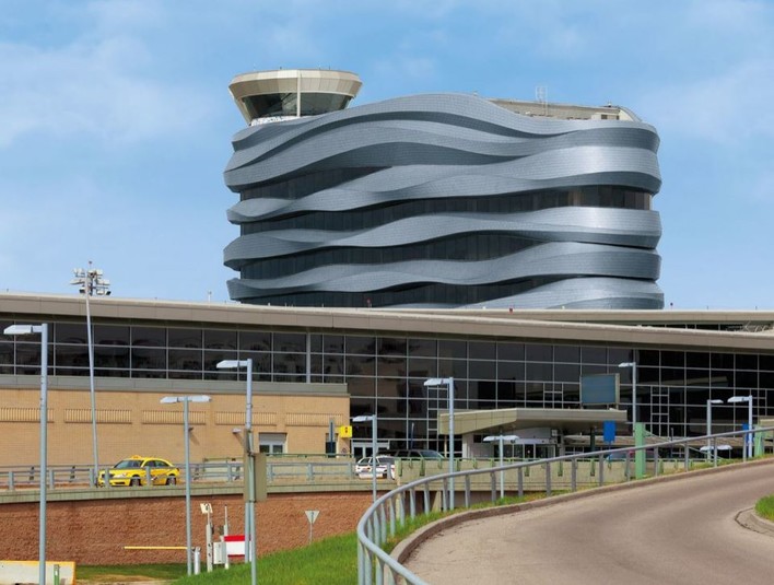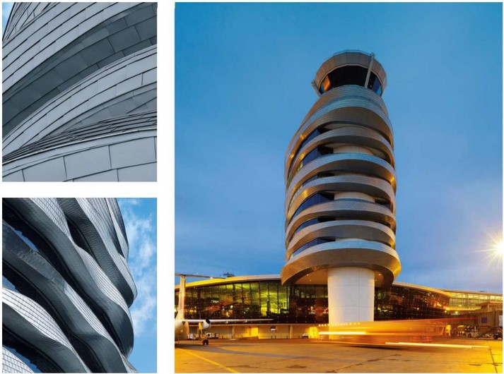 Ще одна відома будівля - 10 тисяч квадратних метрів канадського аеропорту Едмонтона. 8-поверхова будівля немов повита «стрічками» Райнцинк.