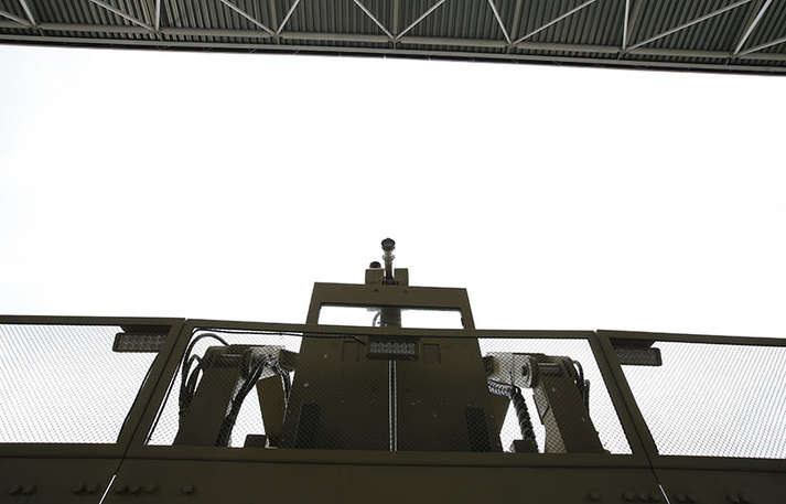 Спецмашина забезпечена захищеною кабіною, водометом і сталевим щитом