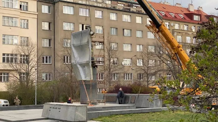 У столиці Чехії, Празі, у п'ятницю, 3 квітня, був демонтований пам'ятник радянському маршалу Івану Конєву. Бронзовий монумент був знятий з п'єдесталу за допомогою підйомного крану, повідомляє Novinky.cz.