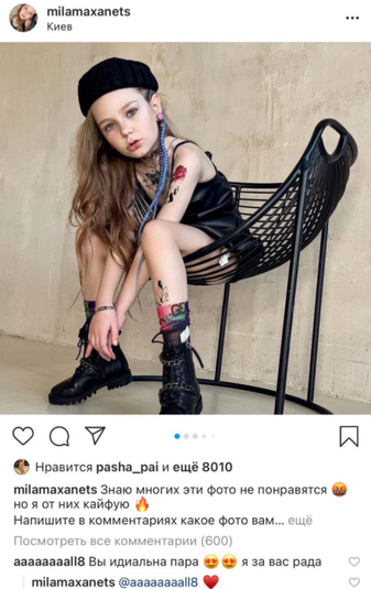 У соцмережах спалахнув скандал через стосунки восьмирічної моделі Мілани Маханець із 13-річним блогером Павлом Паєм та відверті фотографії дівчинки.