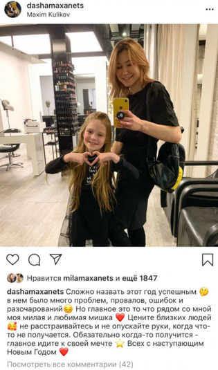 Зазначається, що акаунт дівчинки веде її мама Дарія Маханець. Матір не турбує суспільна думка та відверті світлини її доньки. Вона каже, що в дітей дійсно любов і радить «недоброзичливцям» не втручатися: «це їхнє життя, вони розберуться».