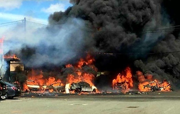 Літак врізався в складське приміщення, в результаті чого кілька будівель загорілися. Літак впав в промисловій зоні, тому вдалося уникнути жертв серед місцевого населення.