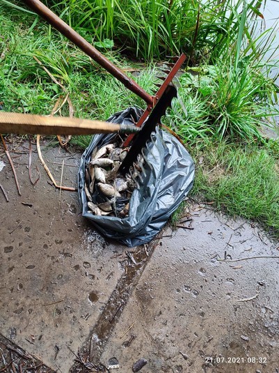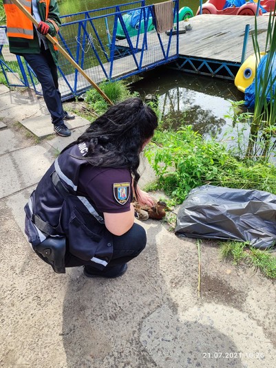 Мертву рибу та загиблих птахів знайшли у ставку №3, що розташований біля дитячого майданчика. Екоактивісти та волонтери витягли з води майже 20 кілограмів риби, яка загинула.