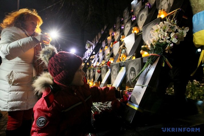 У центрі Києва, на алеї Героїв Небесної Сотні, до 4-ї річниці початку Революції Гідності засвітили Промені гідності.