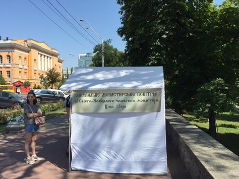 «Увага! В Київ завезли свіжу партію повітря з чоловічого монастиря. Півлітрова банка 15 гривень. Це не жарт. Біжу в офіс повз парк Шевченка – стоїть черга до палатки з банками. Ну, думаю, мабуть консервація чи шо (хоча місце дивне), підбігаю, а там ікони стоять в палатці. Виявилось черга стоїть за повітрям із чоловічого монастиря», - написав Глоба.