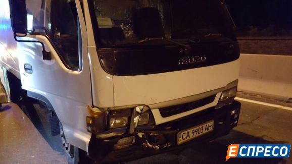 У Києві на Набережному шосе сталася ДТП з фатальним наслідком. Водій вантажного автомобіля Isuzu не впорався з керуванням та врізався у спецавтомобіль КП "Київськміськсвітло", при цьому дорожній працівник отримав травми несумісні з життям.