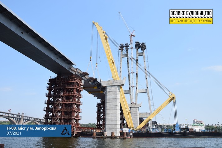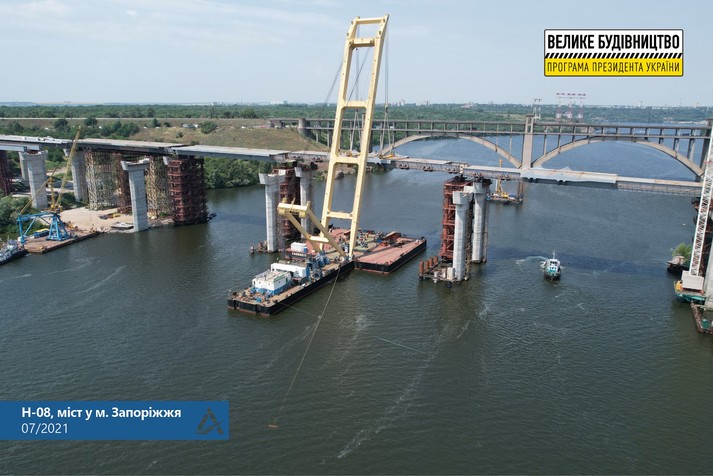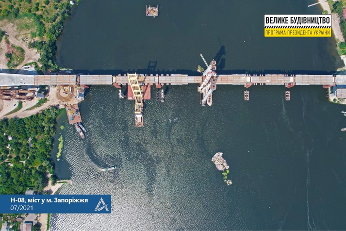 Відомо, що надалі мостобудівники почнуть обварювати металоконструкції в єдину прогонову будову, а потім відбудеться процес опускання її на проєктні відмітки, тобто на капітальні опори мосту.