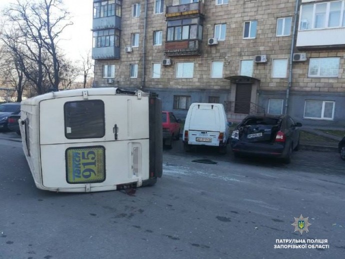 «В результаті чого водій маршрутного транспортного засобу втратив керування, перекинувся та при цьому пошкодив два припарковані автомобілі», - розповідають патрульні.