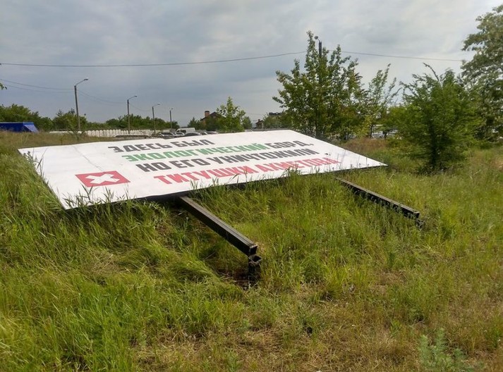 На наступний день борди знищили невідомі. У відповідь автори бордів повісили на місце напис «Тут був екологічний борд, але його знищили тітушки Ахметова».