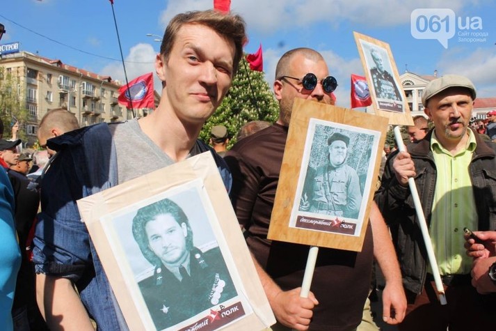«Під час заходів, приурочених до Дня перемоги, у Запоріжжі сталася сутичка: серед міста зустрілися дві групи активістів, одна із яких мала радянську символіку, що обурило іншу. Групі запропонували зняти радянську символіку. Виник конфлікт. Декількох учасників акції забрали до відділку поліції. Інших зіткнень не відбувалося», – повідомив кореспондент телеканалу.