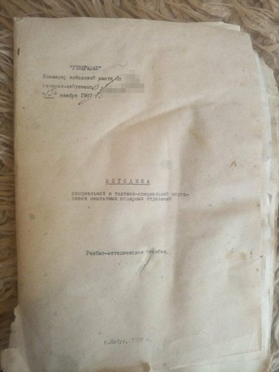 У чоловіка також виявлено радянський військовий навчально-методичний посібник з підготовки диверсантів «Методика спеціальної та тактико-спеціальної підготовки позаштатних саперних відділень». Він надрукований в одній з радянських військових частин, що була залучена до бойових дій в Республіці Афганістан.